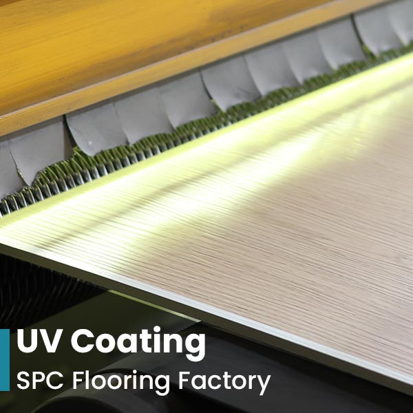 En los pisos SPC, el rendimiento de la superficie lo controla la línea de acabado UV.